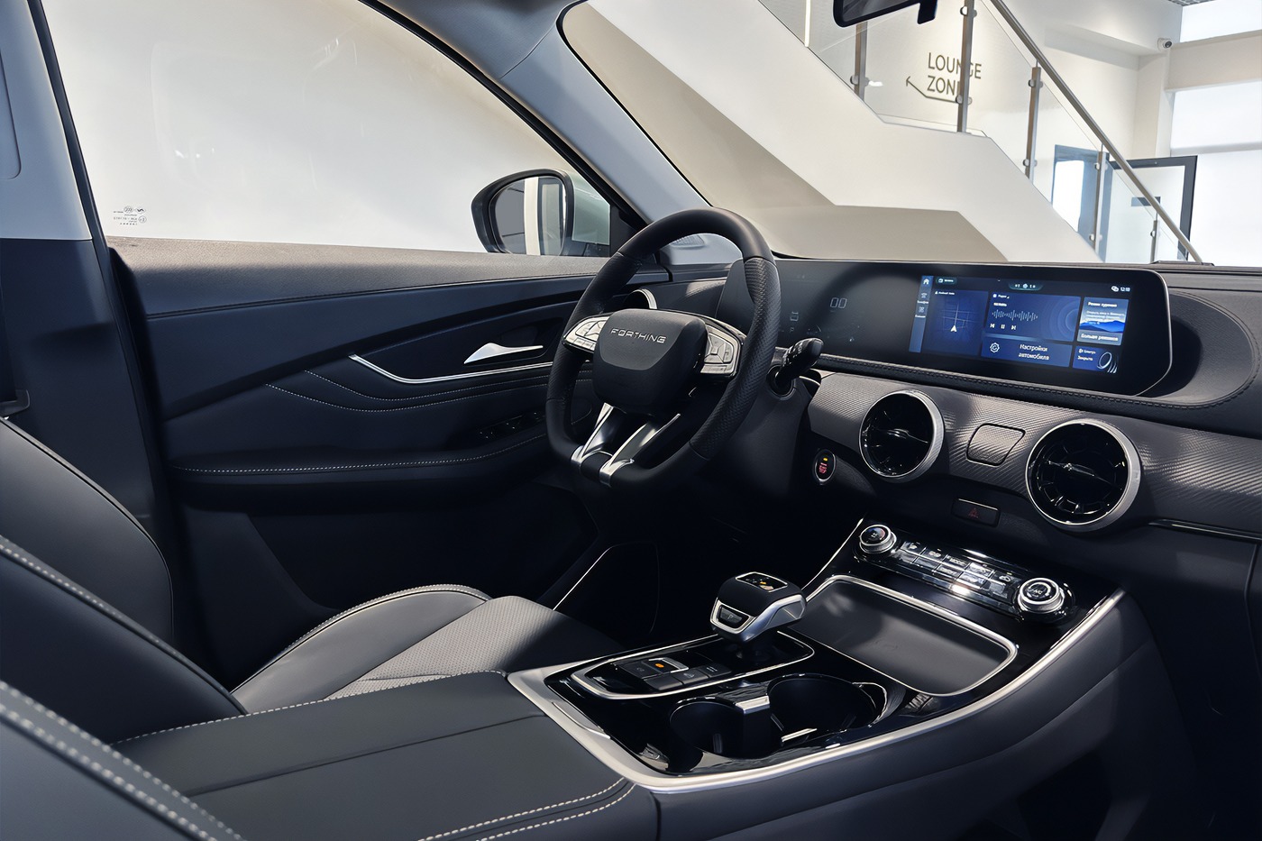 4K дисплей Widescreen занимает большую часть ширины передней панели салона: в него интегрированы экраны цифровой приборной панели и мультимедиа FutureLink с Android Auto, каждый диагональю 12,25 дюйма.
