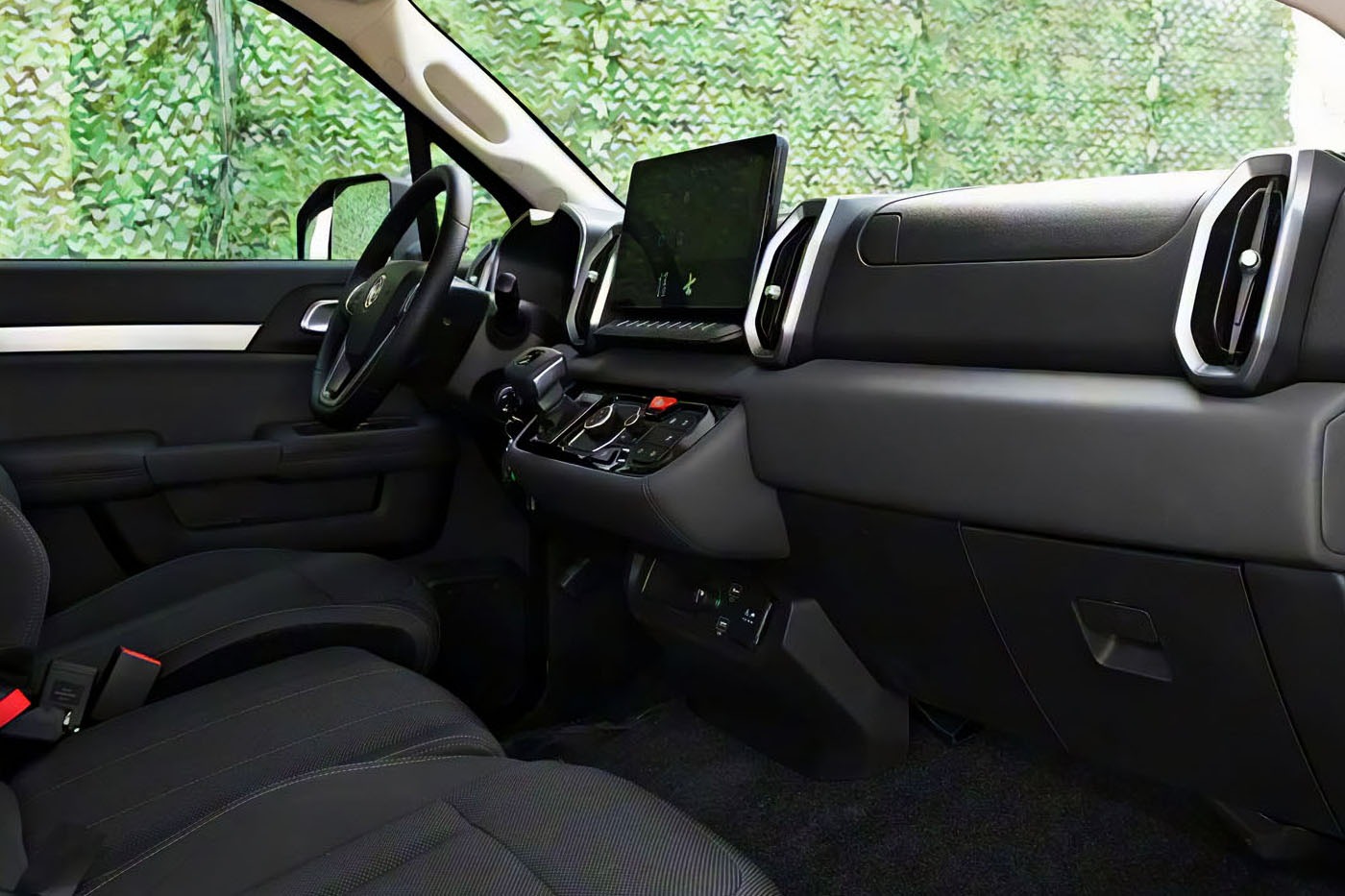 Кабина шириной более 1,7 метра и расположение рычага АКП на передней панели позволили разместить спереди в ряд три эргономичных сиденья. В верхней части передней панели расположен цветной 12,8-дюймовый центральный экран.